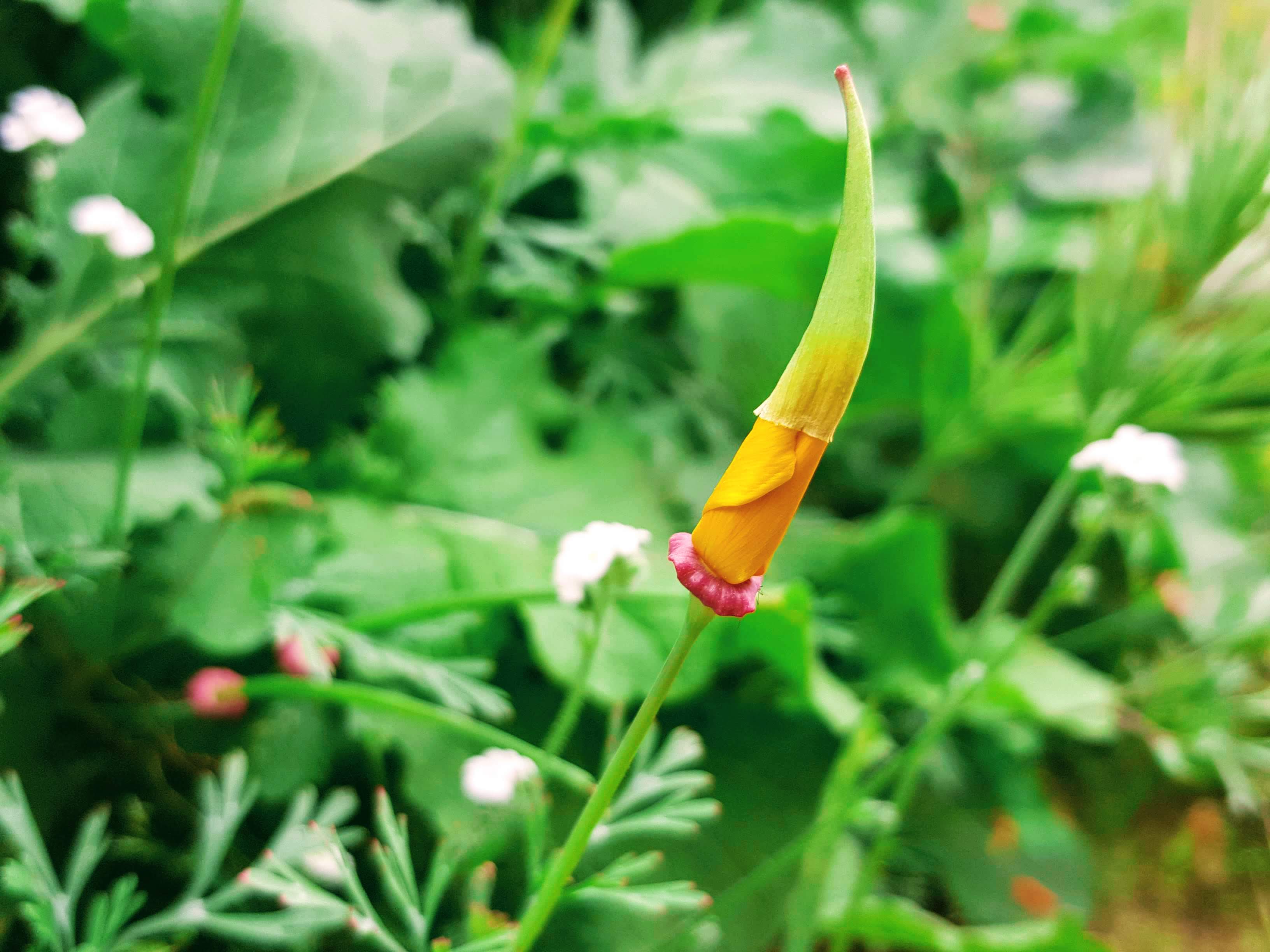 Whispering bells (Emmenanthe penduliflora); note the large green sepals around the flower.