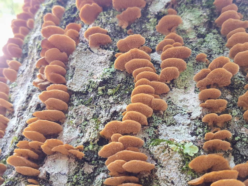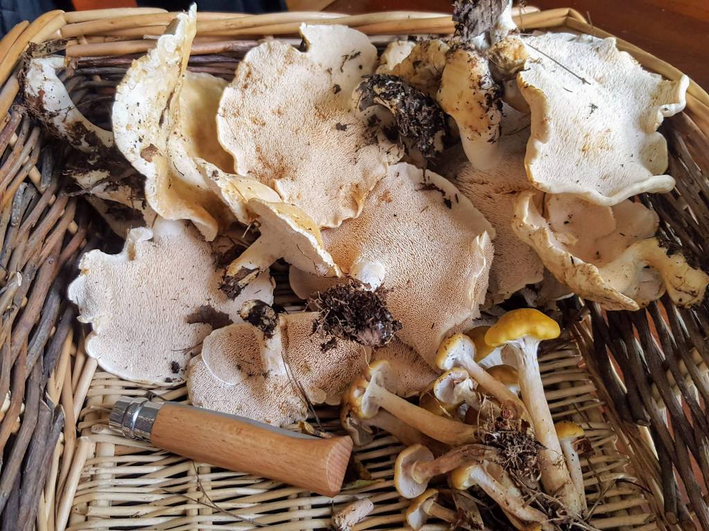 Photos Backlog 2 – Mushroom Season It was a good season. Saprophytic tooth fungus on a dead tree. Hedgehog mushrooms (Hydnum repandum) Fly agaric, do not eat (Amanita muscaria) Fall colors Hedgehog mushroom (Hydnum repandum) and honey mushroom (Amillaria) Pigskin puffball (Scleroderma)